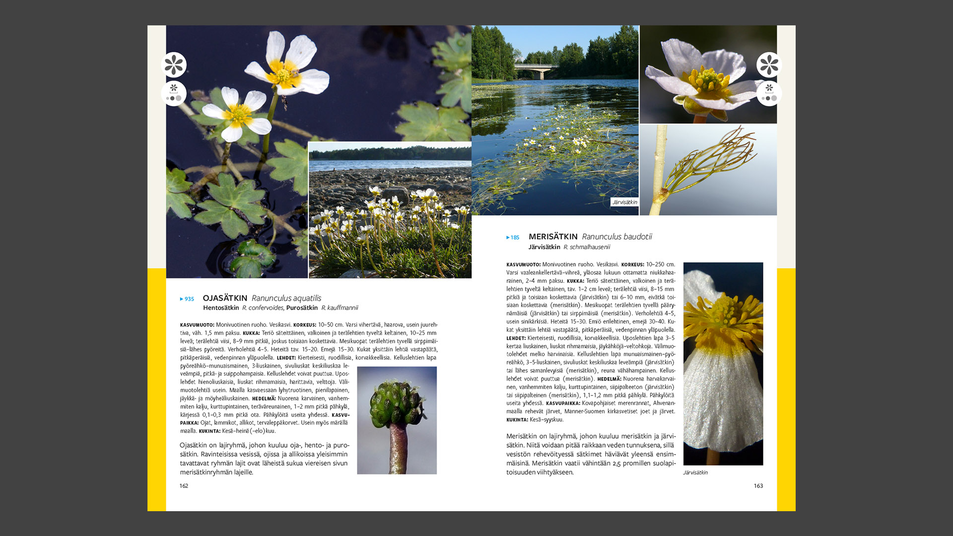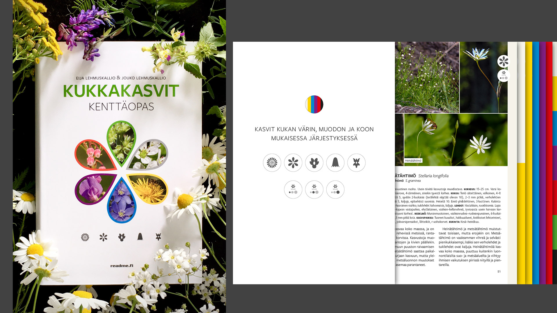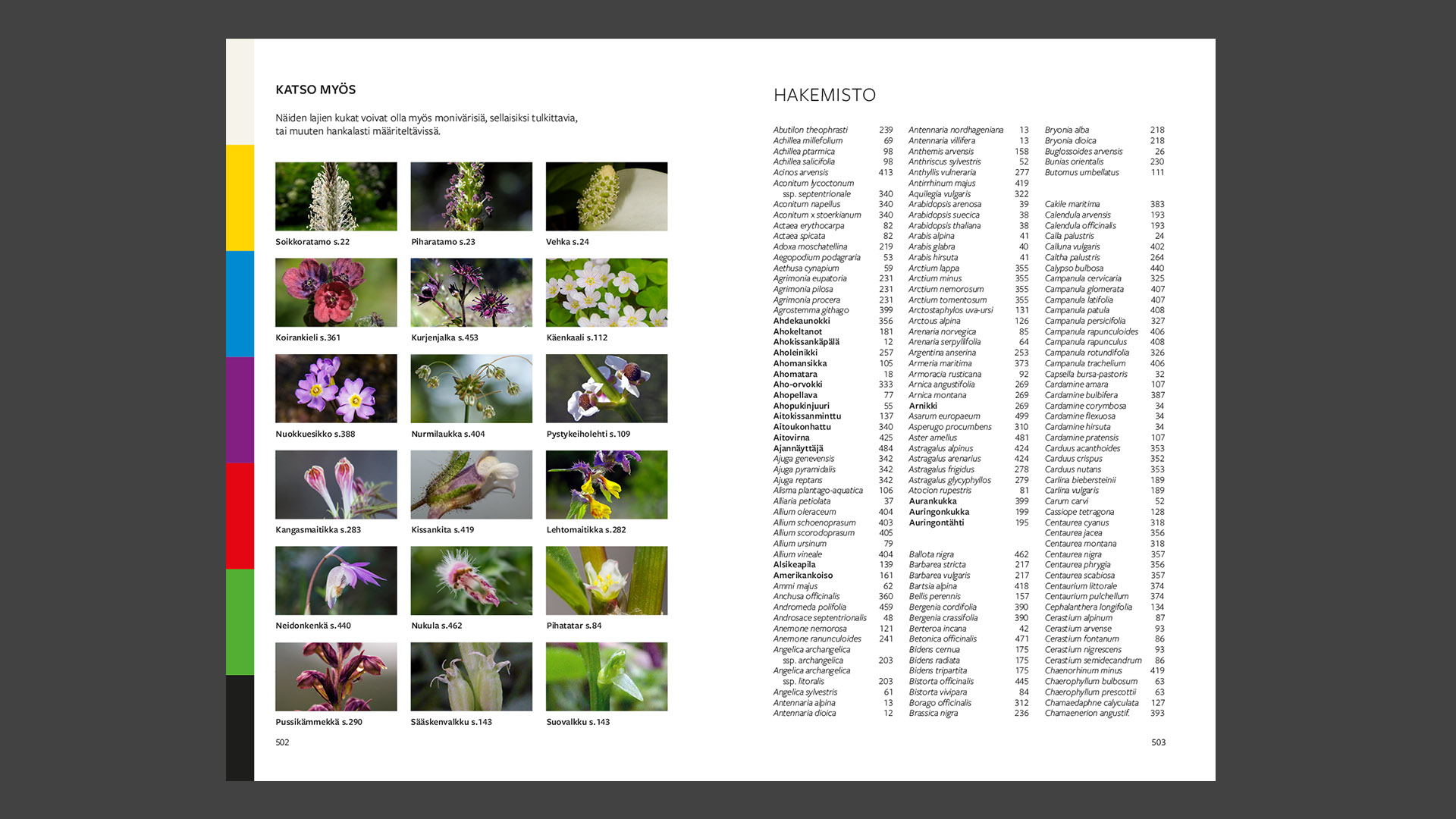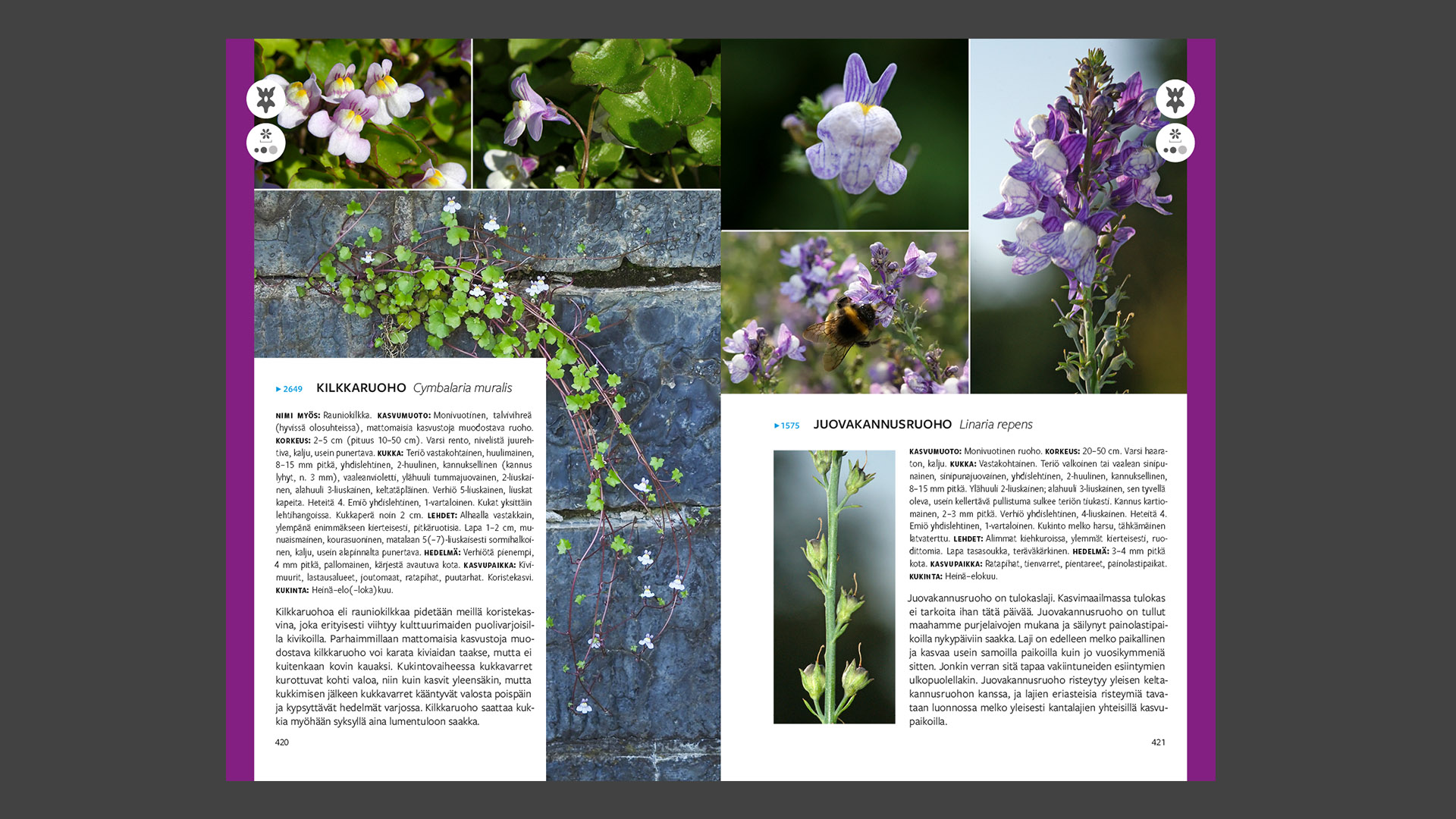 - Kukkakasvit Kenttäopas – graphic design, book formatting and typesetting, image prepress, project management. From web to book (xml + InDesign).