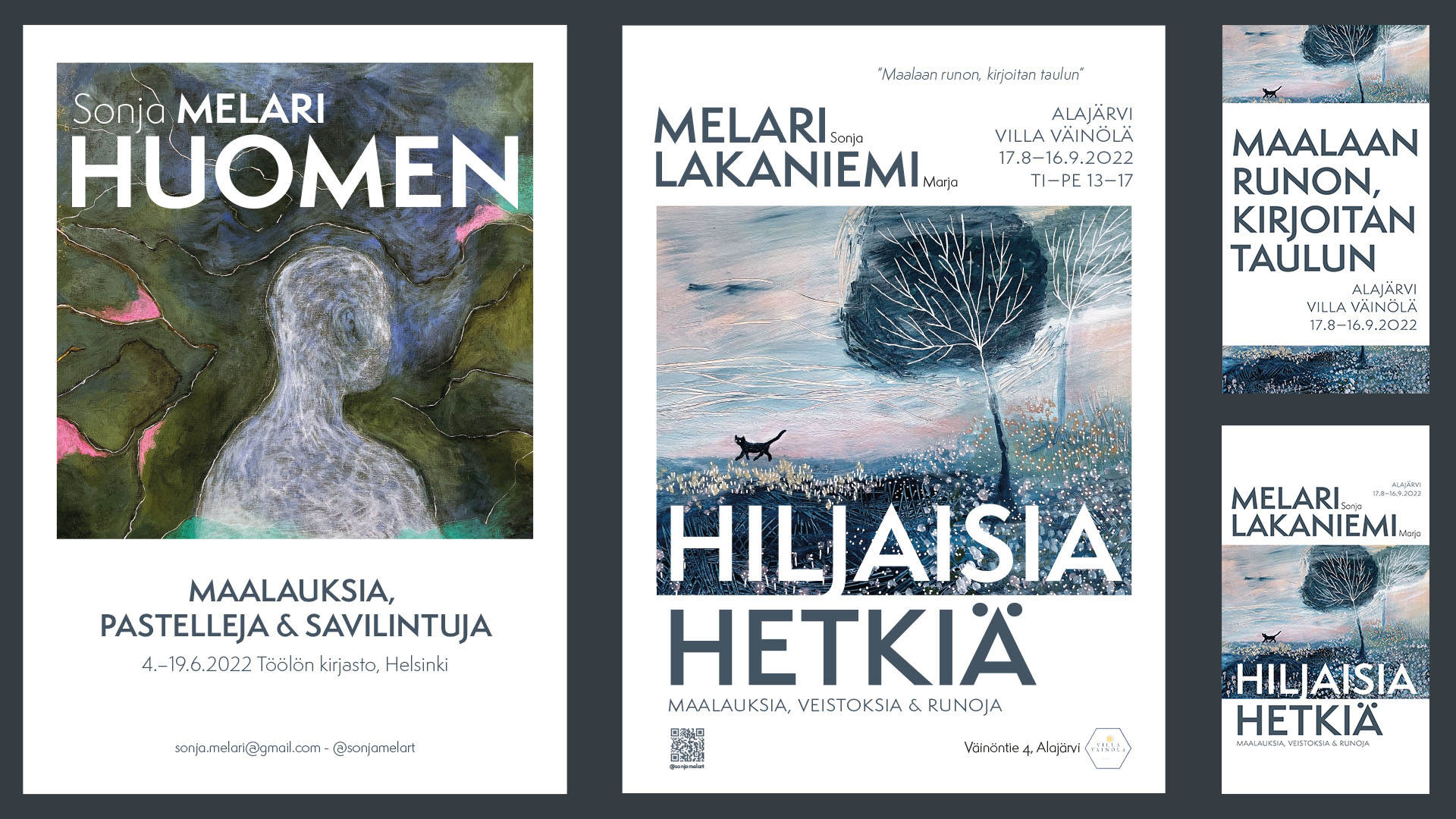 - Exhibition posters, Instagram story ads for artists Melari & Lakaniemi.