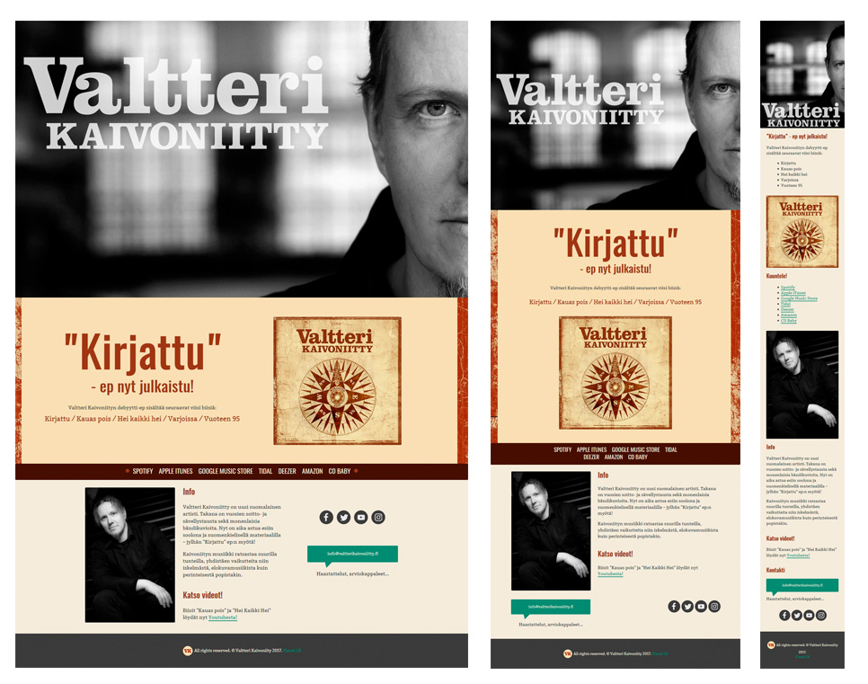 - Full visual service pack for artist Valtteri Kaivoniitty. Website, cover artwork, press images, videos.