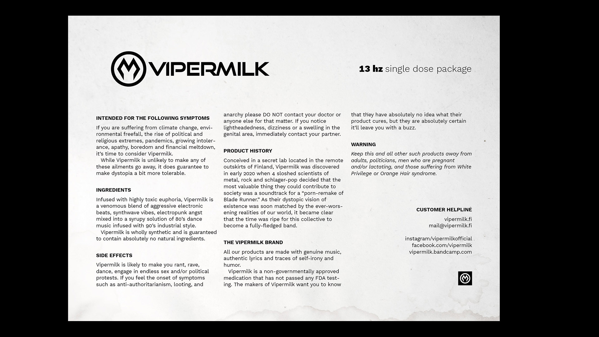 - Full visual service pack for a dark synth band Vipermilk. Logo, website, cover artworks, videos.